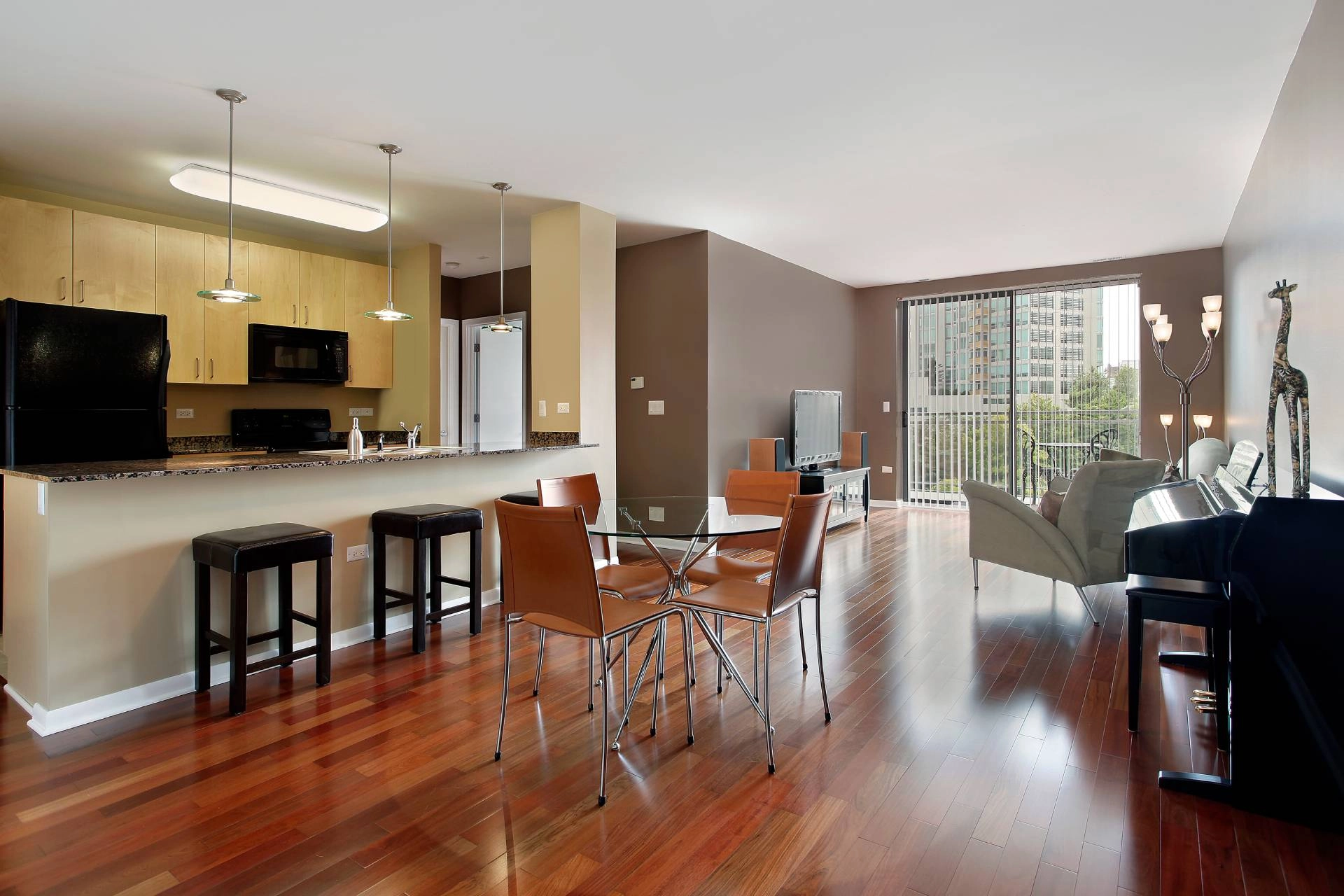 For instance, you might choose neutral blinds for your condo, like white or taupe, for a clean or minimalistic style. However, if you’re looking to add bold colors or achieve an industrial interior design, you might go for blinds in the opposite direction.